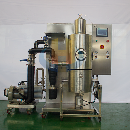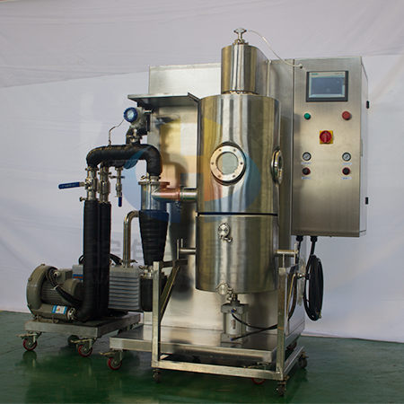 實驗室冷凍噴霧干燥機適用于熱敏性、粘稠性、活性物料及含糖量高的物料的低溫干燥,如中草藥天然產物提取液、乳制品、生物制劑、酶制劑、水果原汁、高分子材料等。